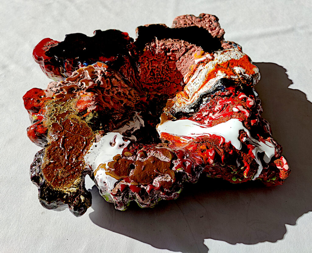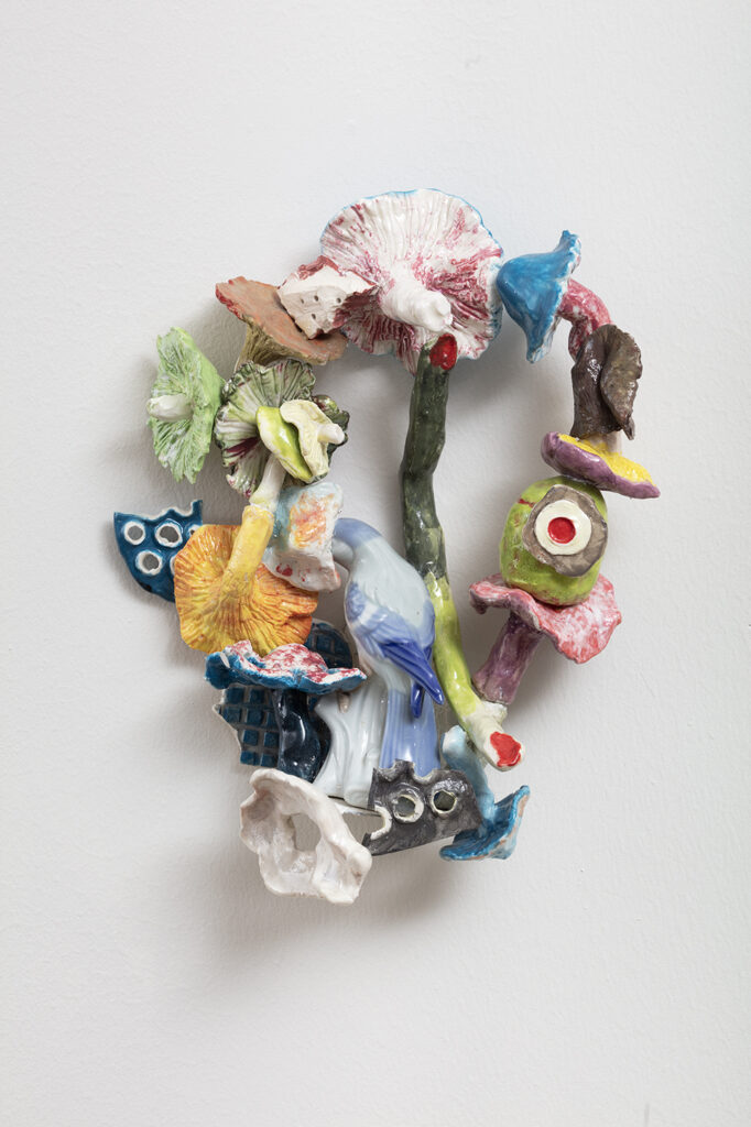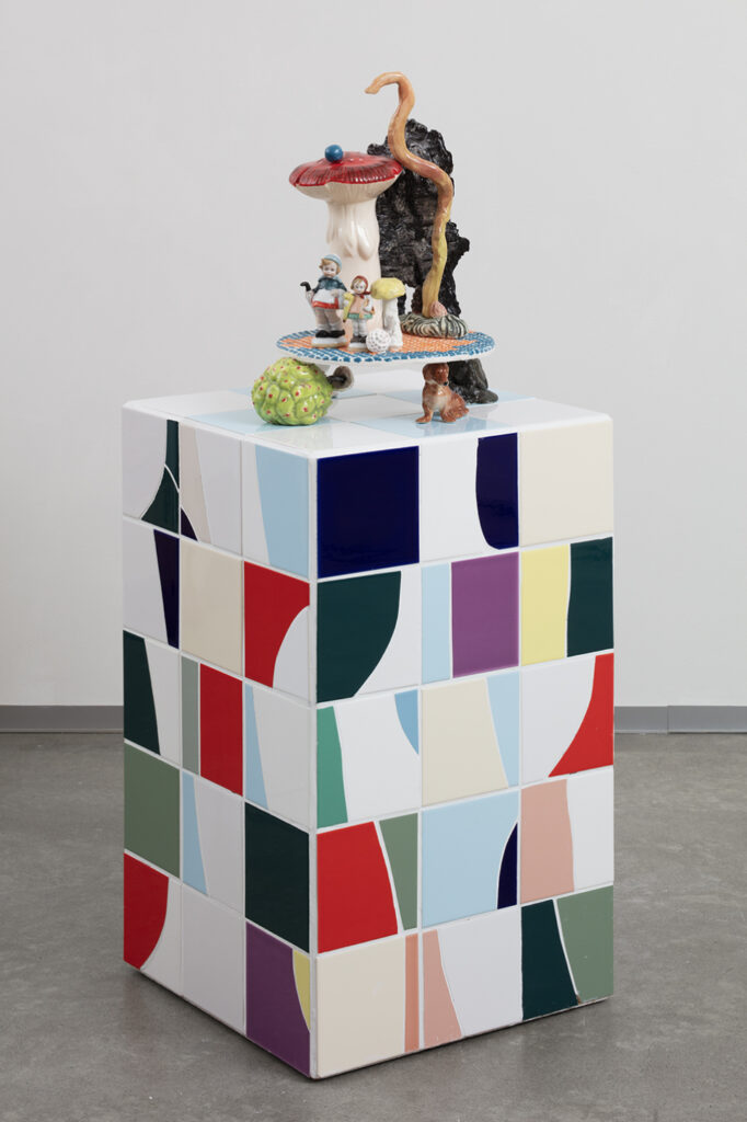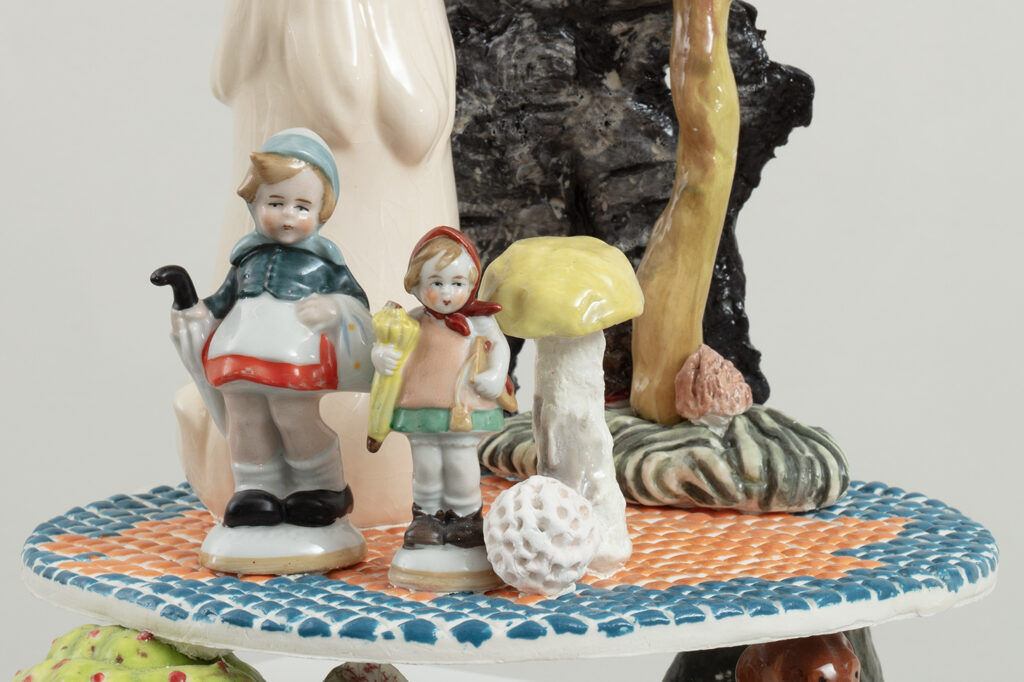 Uusimmat keramiikkaveistokset leikkivät ehkä entistäkin vapaammin. Hoviväki liikkuu puunrunkojen ja sienien metsikössä ja sitten annetaan palaa lujaa; ”Päätön nainen soittaa mandoliinia”.